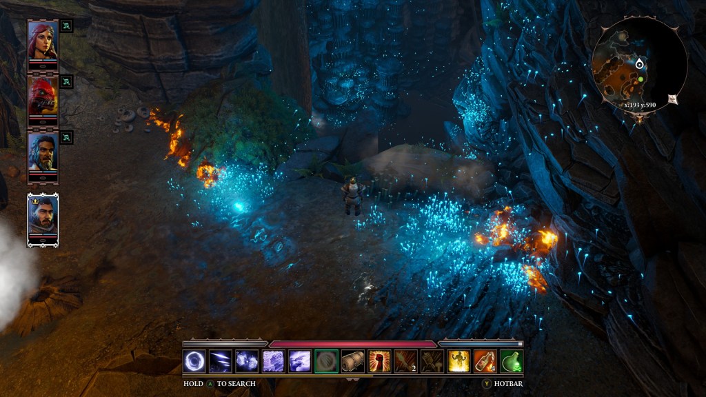 Luckily for me though, there wasn’t an actively burning fire on the way up the mountain or else my party would have just charged right in there without any sort of self-preservation in mind. For instance, during the tutorial you find yourself in an area where fire is happening all around you and you need to kind of just walk past it. There’s a pretty large path to follow, but your characters only know of the most efficient route to get to where you clicked, which is barreling straight through regardless of what’s in their way.