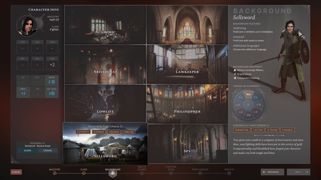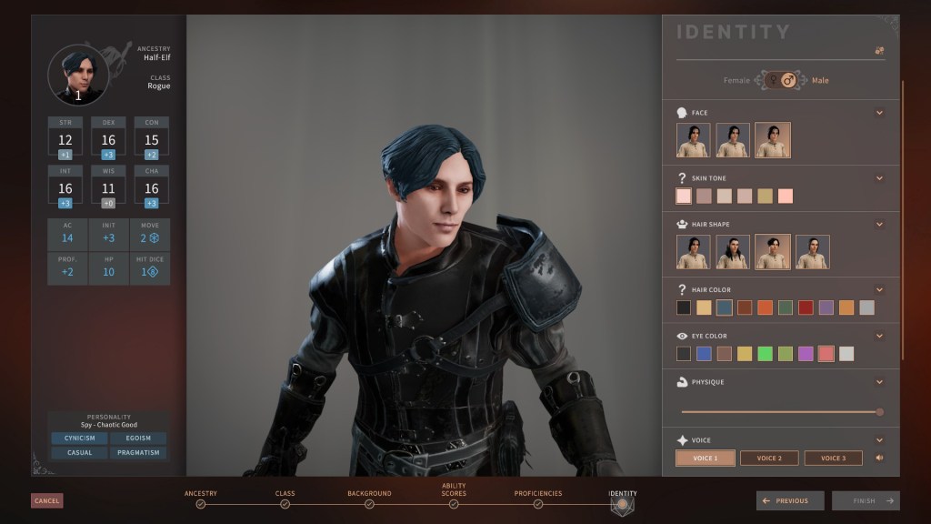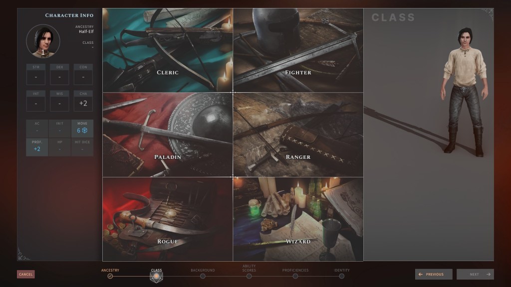 When you start Solasta Crown of the Magister, you can build an entire party from scratch or use some of the pre-generated offerings if you like. When building a character, you can choose from 8 playable races which include specific race variants (i.e. High Elf & Sylvan Elf), 8 backgrounds and 6 character classes. You are walked through character creation step by step, letting you know everything from what a particular god is all about, what benefits a certain background might grant and much more. I genuinely love the process of creating a character and think it’s fantastically well done, with the exception of how the character actually looks.