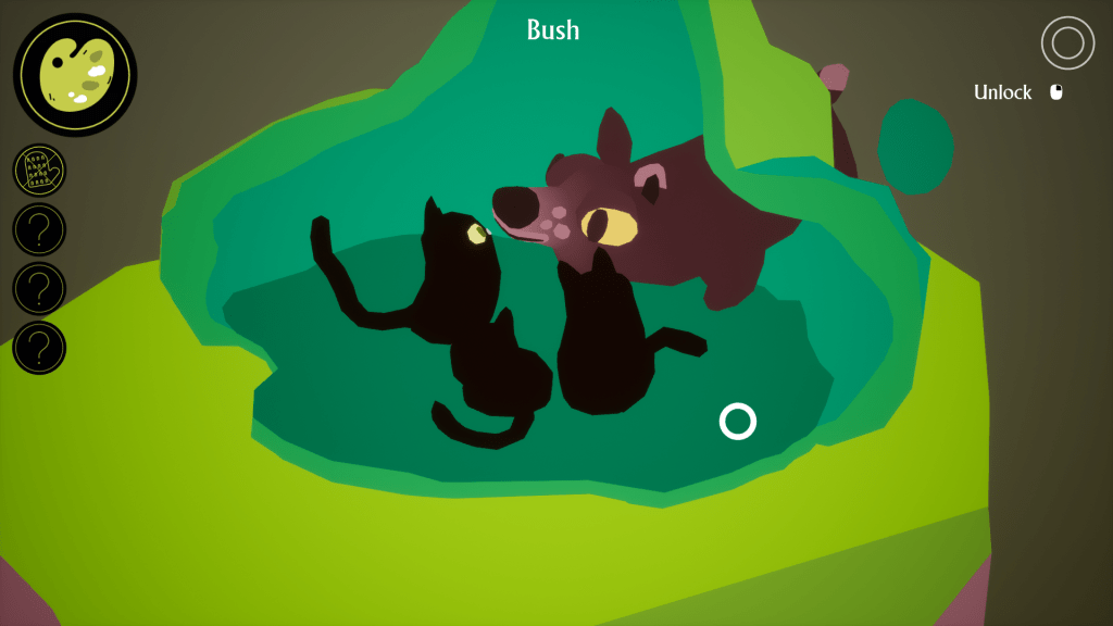 One of the objects on my list was a Frisbee with some stars on it that was confiscated by a real uppity campground manager. In each level, there are these smaller inspection areas where you can focus on individual objects and structures. In this example, the manager’s RV was one of these inspection zones that I could zoom into and peel back the layers of. As you zoom into the RV the walls melt away to uncover a messy interior littered with various flotsam and jetsam to look at. You can click on cupboards, bottles, coolers, toys, plants and much more to see what’s inside of them by zooming in. Eventually I zoomed in on a chair that had a storage space underneath it and found the Frisbee, crossing it off the list of items in the level I needed to discover.
