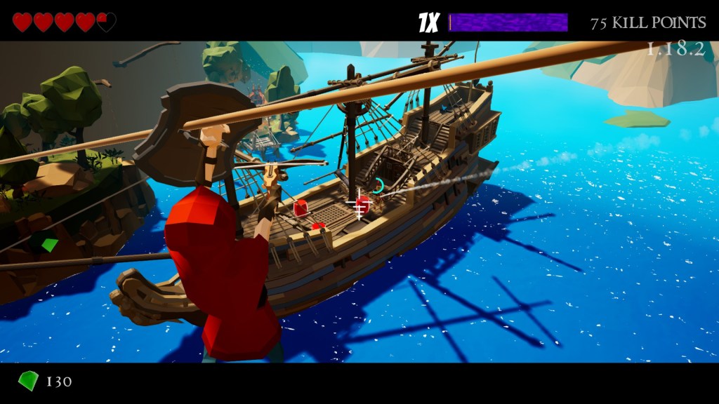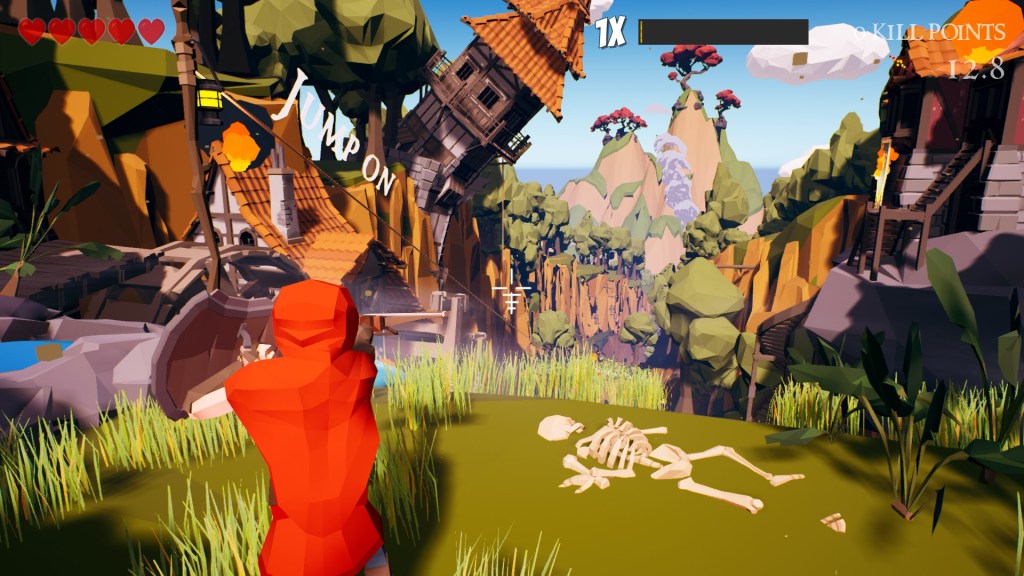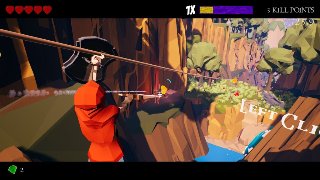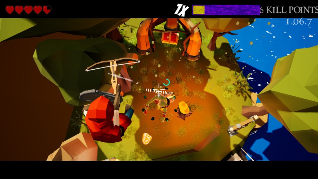 While it isn’t necessarily a bad thing, Sherwood Extreme sure seems like it’s trying to do the whole Bulletstorm thing in a low-polygon art style, replacing space marines with a Robin Hood-looking character who’s killing orcs. Sherwood Extreme is a level-based arcade-styled action game, where you’re trying to rack up the highest score you can by chaining together kills and acrobatics throughout a level in order to keep your combo meter up.