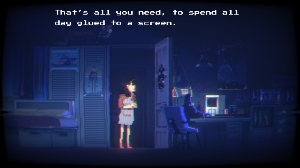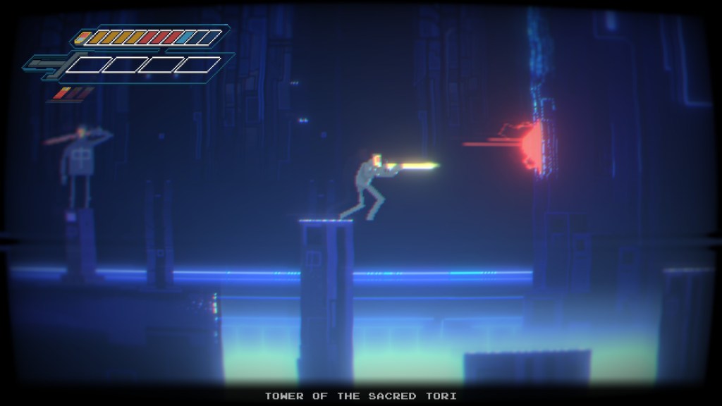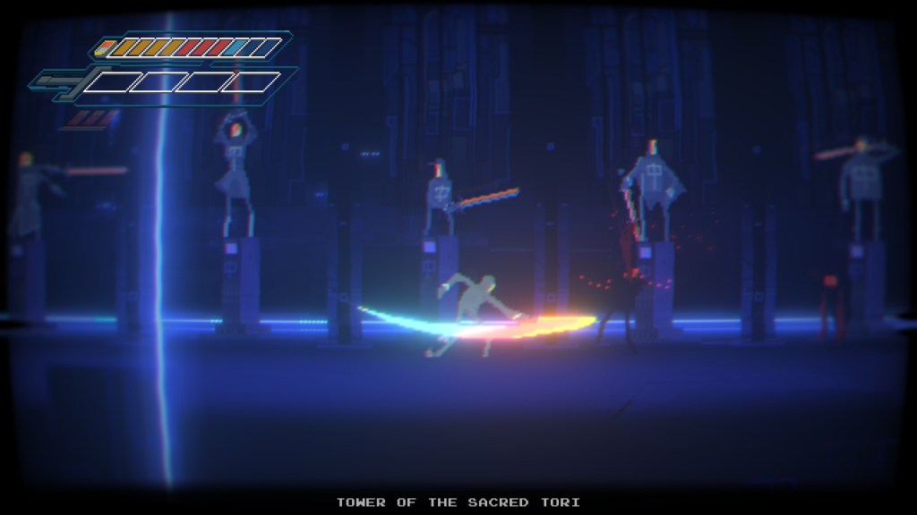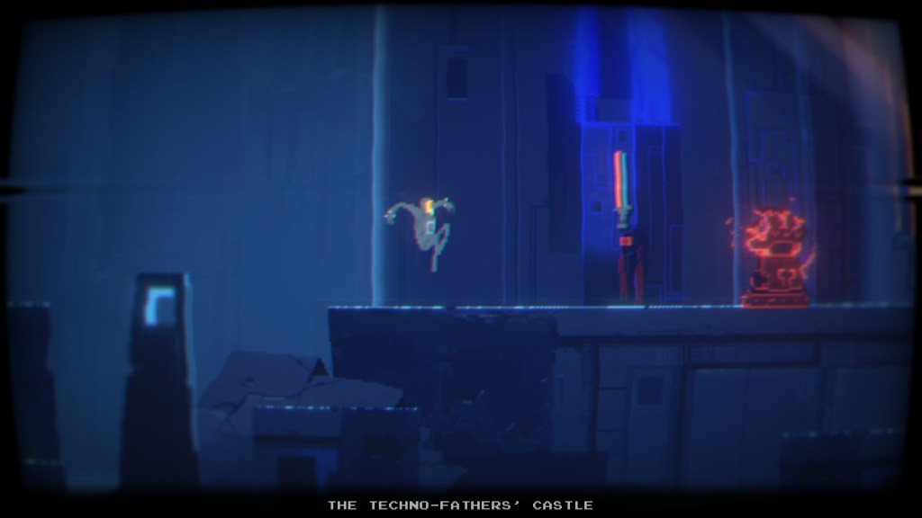 Speaking of games I wanted to like more than I actually did, let’s talk about Narita Boy. Stop me if you’ve heard this one before, but Narita Boy is a 2D pixelated action-platformer with Metroidvania elements. Right off the bat I will say that Narita Boy presents itself very well, both in terms of the art style and the soundtrack. And when you eventually do get to fight things, that feels pretty dang good too. You get this very cool sword that feels great to swing around and slash up monsters with, but you can also turn it around and use it as a shotgun which is objectively rad as hell.
