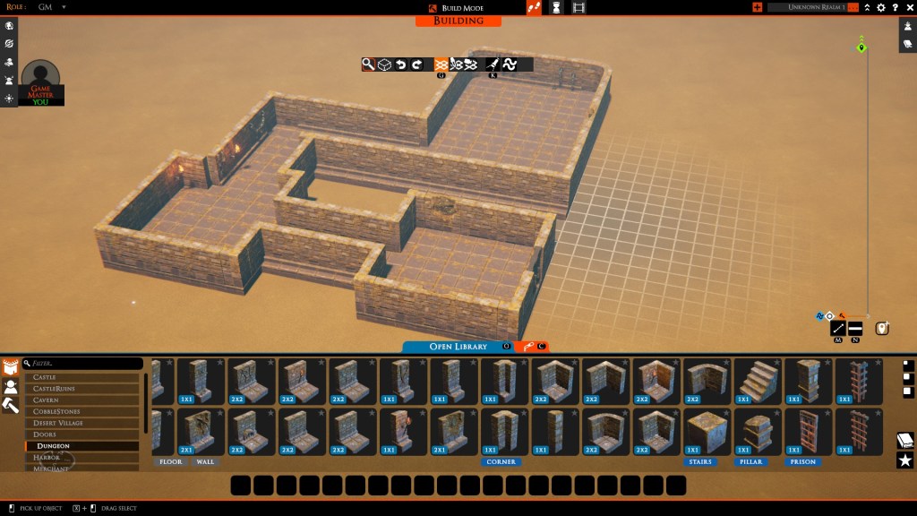 For instance, there are a few different modes you can swap between, from exploration mode, to build mode, cut-scene mode and initiative mode, all of which are pretty self-explanatory, but then there are different GM layers you can toggle on and off along with different triggers that can activate different events or hide certain elements of the map from your players. The tutorials give a broad, single paragraph overview of how these things can work, but they don’t do a great job at explaining how to actually make use of them. For instance, I have no clue how to trigger a cut-scene, but I know that it is possible considering there’s an entire mode literally called “cut-scene mode.”