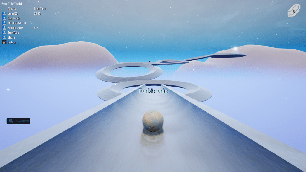Out of the five games I played, almost all of them had some sort of mobile game, money sucking mechanics in it. The first game I played was a Marble Madness styled experience where you and the other people in the lobby race through an obstacle course towards the finish line. The game itself was fine, but the physics, and this is going to be a running theme, were pretty wonky. Jumps weren’t reliable and you’d hit a piece of geometry in the wrong way and send your marble flying into space. But hey, there was a daily check-in station in case I wanted to come back tomorrow and play this super cool game, earning some extra marble-bucks or whatever.