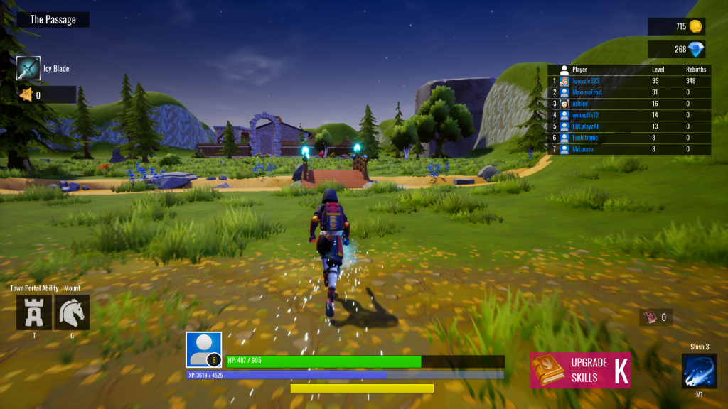 Next, I played a game that billed itself as a “true” action-RPG, a claim that was made by a big fat liar. You start in a town with a sword and can walk outside the gates to kill generic NPC dudes with swords, skeletons with swords, or a big rock monster. That basically involves mashing the left mouse button in the general vicinity of an enemy until they die. You do that a bunch of times until you level up, pick up some gold off of the enemies, and return to town to level up and maybe buy new weapons. You can buy a sword, a sword and shield, a crossbow, a hammer or some magic staff along with a bevy of skins. All of these things have price and level requirements, but it all just seemed in service of getting better weapons to run into a higher level field to run that loop all over again. It’s immediately boring and the maker must have realized that because they literally put in places for your character to idle AFK and gain gold or experience. Maybe that’s a thing in MMOs, I don’t know, but it was incredibly wild to see for myself. I suspect this was in an attempt to boost their active player count by inciting people to literally not play their game, while playing their game.