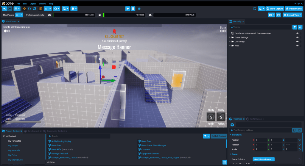 But it’s hard to poke fun at the people who spent time making these games, because they probably put a lot of work into making them and I don’t want to detract from that. Sure a lot of them put in some pretty nasty mobile game mechanics into their games, but they still took the time to make a thing. With that thought, I checked in on the creation stuff and it seemed pretty dense and involved, although Core does let you pick from a list of premade concepts like racing, fighting, king of the hill and more, to give you a better starting point than just a blank screen. So I loaded up a deathmatch prefab and immediately was overwhelmed by the tools available and closed it, which could be interpreted as the tools being fairly robust, or me just not having the patience for that shit.